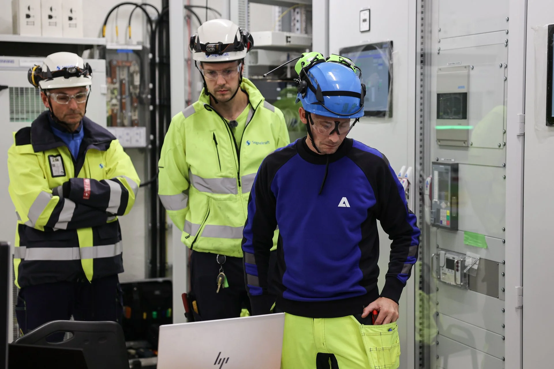 Det var stor spaning i lufta då Fridell saman med eit eit solid team rundt seg frå Sognekraft, Veidekke, Andritz og Spetals Verk gjennomførte dei aller første testane inne i kraftverket måndag føremiddag.